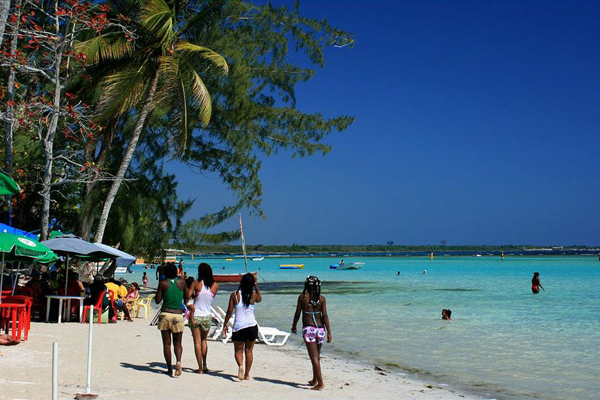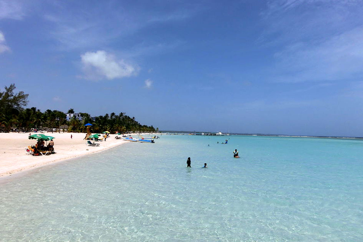 Der Strand von Boca Chica ist wirklich einzigartig. Seine Gewässer bilden eine Bucht von über 1,5 km. ca. 400 Meter ausserhalb befindet sich ein Riff in Form eines riesigen Halbkreises, welches von einem Ende bis zum anderen über die Wasseroberfläche herausragt und die Bucht komplett umschliesst. Auf diese Weise bildet sich ein riesiger Salzwasser-Pool, dessen Tiefe nur 90-120 cm beträgt. Dass Riff bildet einen natürlichen Wellenbrecher zum Karibischen Meer, so dass die Bucht gewöhnlich extrem ruhig liegt. Innerhalb des Riffs ist das Wasser durch die stetige Filterung glassklar, und wird immerwährend durch eine Reihe natürlicher Unterwasser-Quellen gespeist. Dieses "Schwimmbad innerhalb des Meeres", ist es, welches die fantastischsten und unterschiedlichsten Panoramen gewährt, denn das tiefe Azur-Blau der Karibik hinter dem Riff steht in extremem Kontrast zu der flachen Bucht, welche je nach Sonneneinfall, zwischen einem tiefen Himmelblau und einem kräftigen Türkis variiert.
